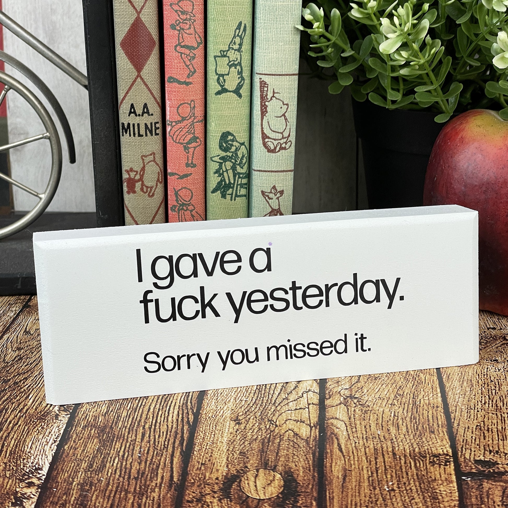 I Gave a Fuck Yesterday. Sorry You Missed It — Adult Humor Desktop Sign — Sits On Any Flat Surface (Tabletop, Desk, Counter)