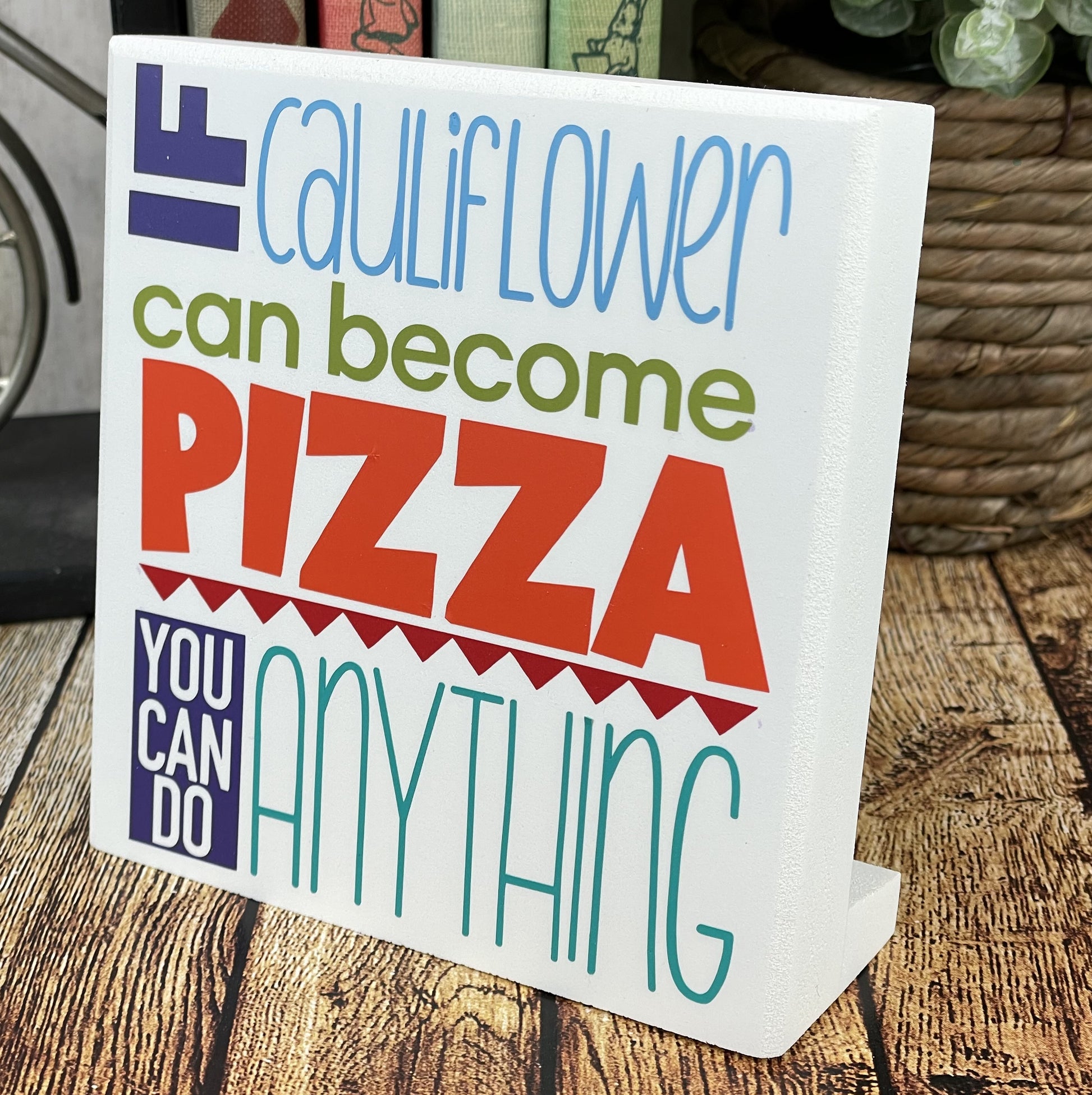 If Cauliflower Can Become Pizza You Can Do Anything — Desktop Sign — Sits On Any Flat Surface