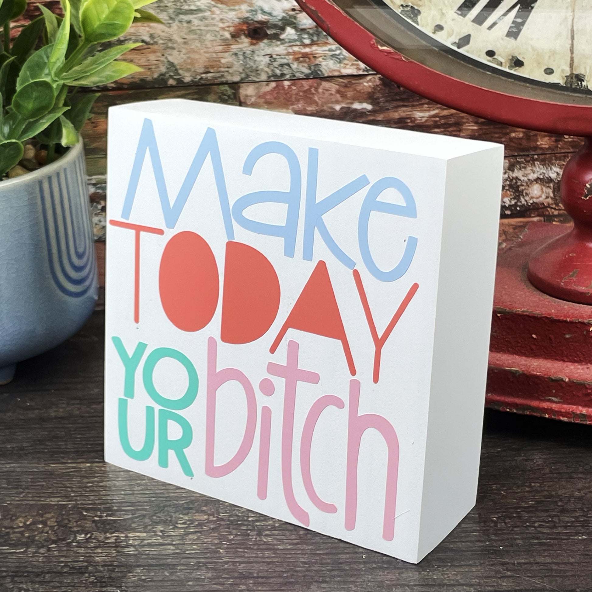 Make Today Your Bitch — Adult Humor Desktop Sign — Sits on Shelf, Desktop or Counter